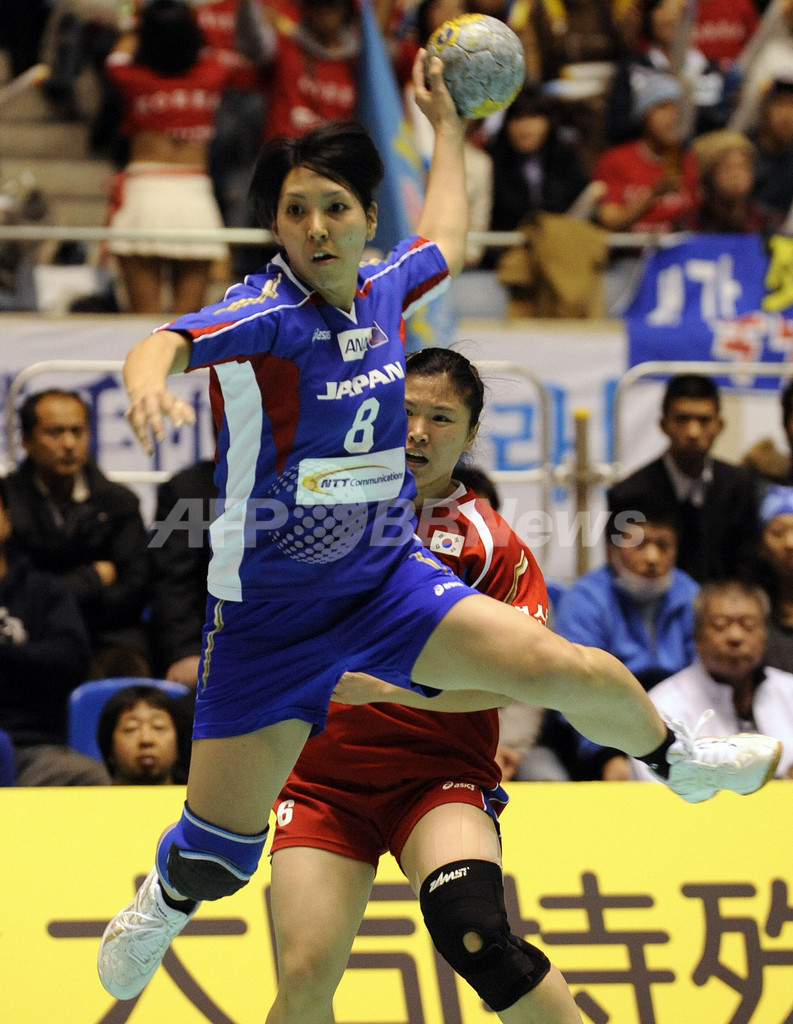 五輪 日本女子、アジア予選・再戦で韓国に敗れ世界最終予選へ 2008年1月30日 8:39 発信地:東京 [ アジア・オセアニア 東京 ] このニュースをシェア ‹ › ❮ 8/8 ❯ 韓国の%%An Jung-Hwa%%を背にシュートを放つ日本の佐久川ひとみ(%%Hitomi Sakugawa%%、左)。(c)AFP/TOSHIFUMI KITAMURA 画像作成中 ! 【1月29日 AFP】(写真追加)ハンドボール、2008年北京五輪アジア予選(再戦)・女子、日本vs韓国。試合は日本が21-34で韓国に敗れ、北京五輪出場権をかけて世界最終予選へと回ることになった。一方、勝利した韓国は北京五輪の出場権を獲得した。(c)AFP 五輪 一覧へ> メディア・報道関係・法人の方向け 写真・動画 購入のお問合せ>