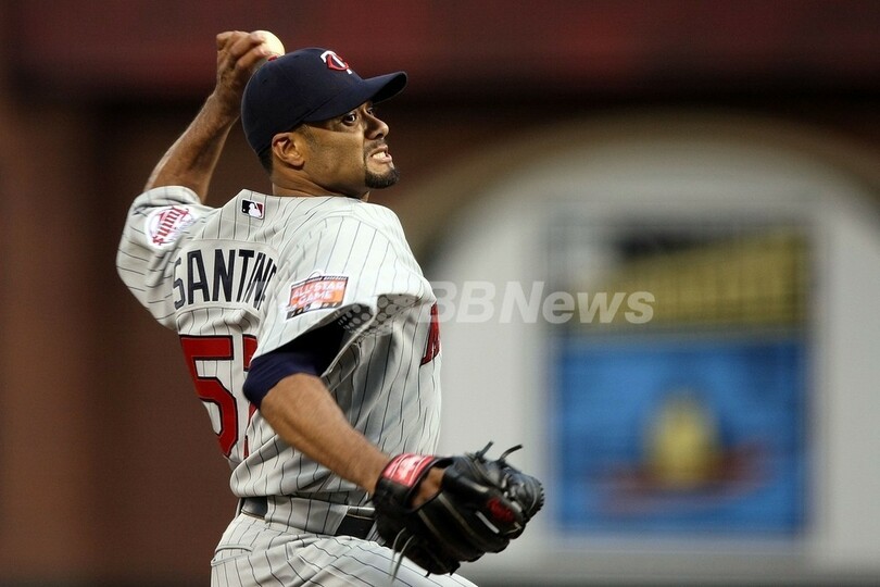 サンタナはツインズにの8シーズン在籍し通算93勝44敗を記録し、2007年シーズンは15勝13敗、防御率3.33を記録している。(c)AFP