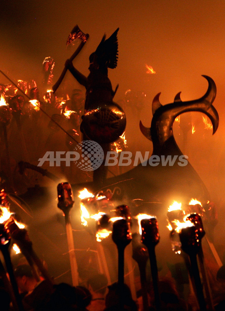 【1月31日 AFP】英国スコットランド(Scotland)北方のシェトランド諸島(Shetland Islands)最大の町ラーウィック(Lerwick)で29日、バイキング時代の遺産を記念する火の祭典、ウップヘリーアー(Up-Helly-Aa)が開催された。