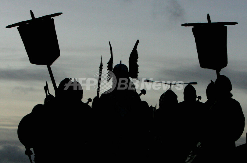 【1月31日 AFP】英国スコットランド(Scotland)北方のシェトランド諸島(Shetland Islands)最大の町ラーウィック(Lerwick)で29日、バイキング時代の遺産を記念する火の祭典、ウップヘリーアー(Up-Helly-Aa)が開催された。