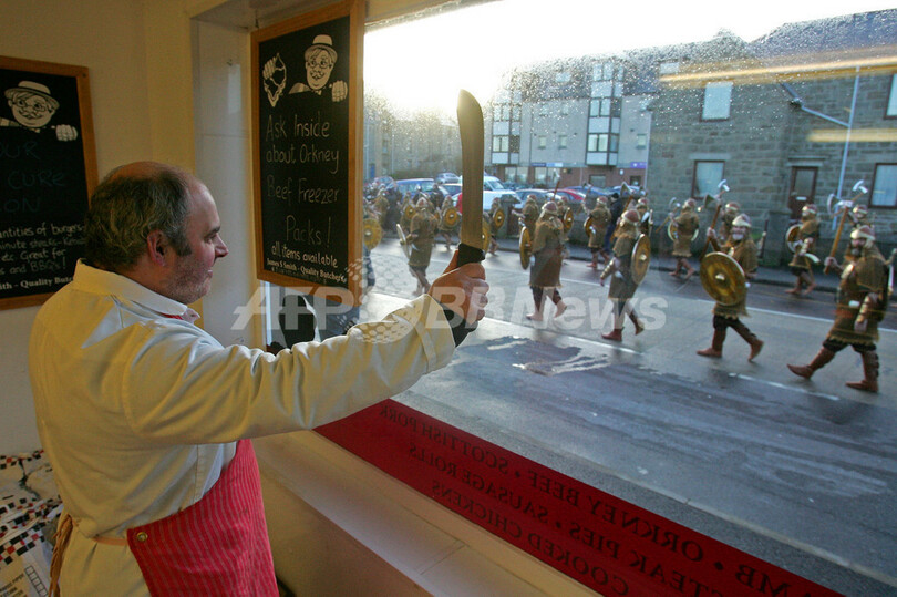 【1月31日 AFP】英国スコットランド(Scotland)北方のシェトランド諸島(Shetland Islands)最大の町ラーウィック(Lerwick)で29日、バイキング時代の遺産を記念する火の祭典、ウップヘリーアー(Up-Helly-Aa)が開催された。