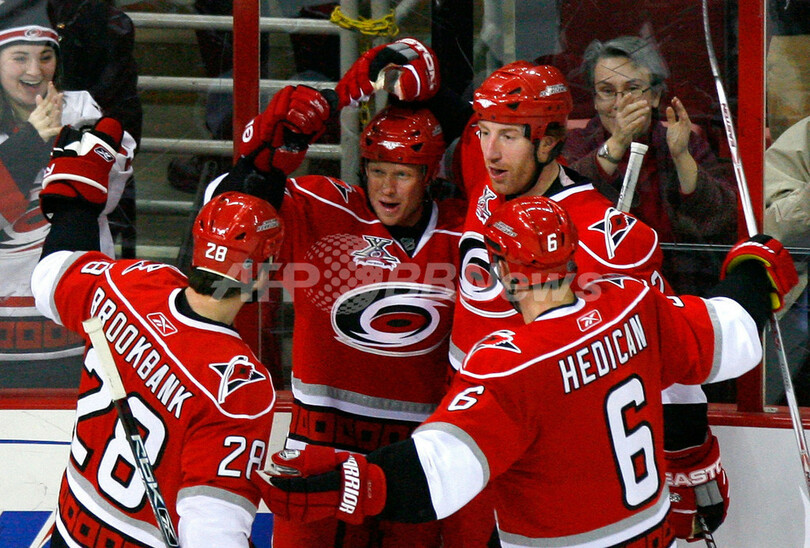スポーツ ウインタースポーツ ハリケーンズ レンジャーズに3-1で勝利 2008年1月30日 16:31 発信地:ラーレー/米国 [ 北米 米国 ] このニュースをシェア ‹ › ❮ 1/5 ❯ 第3ピリオドにチーム3点目を決め、チームメイトのウェイド・ブルックバンク(%%Wade Brookbank%%、左)、マイク・コモドール(%%Mike Commodore%%、右奥)、ブレット・ヘディカーン(%%Bret Hedican%%、右手前)らから祝福を受けるハリケーンズの%%Trevor Letowski%%。(c)AFP/Getty Images/Kevin C. Cox 画像作成中 ! 【1月30日 AFP】07-08NHL、カロライナ・ハリケーンズ(Carolina Hurricanes)vsニューヨーク・レンジャーズ(New York Rangers)。試合はハリケーンズが3-1でレンジャーズに勝利した。(c)AFP/Getty Images ウインタースポーツ 一覧へ> メディア・報道関係・法人の方向け 写真・動画 購入のお問合せ>