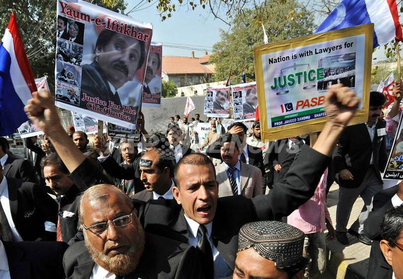 司法関係者らが大統領退陣と元最高裁長官の解放求めデモ、パキスタン