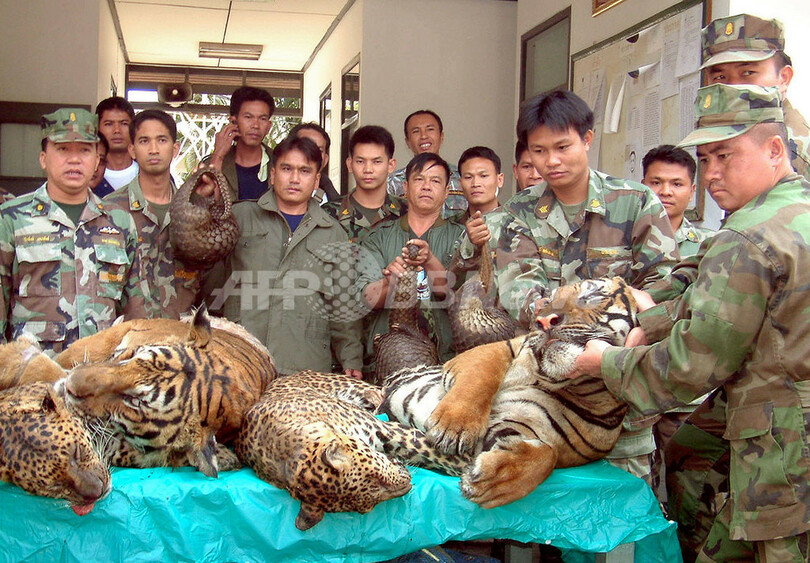 ニュース 社会 密猟されたトラの死骸などを押収、タイ 2008年2月1日 15:57 発信地:タイ [ アジア・オセアニア タイ ] このニュースをシェア ‹ › ❮ 1/2 ❯ 2008年1月29日、ラオス国境に近いタイのメコン(Maekhong)川河岸で、密輸途中に押収された死んだベンガルトラやヒョウ、生きているセンザンコウを公開する海軍士官ら。(c)AFP 画像作成中 ! 【2月1日 AFP】タイ海軍当局は29日、ラオスとの国境に近い北東部のメコン河岸で密猟者から押収したベンガルトラやヒョウ数頭の死骸と、生きたセンザンコウ275匹を公開した。取り締まり作戦の責任者は、いずれも密輸されるところを押収したものと説明した。(c)AFP 社会 一覧へ> メディア・報道関係・法人の方向け 写真・動画 購入のお問合せ>