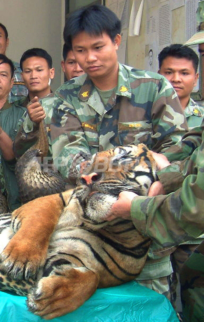 ニュース 社会 密猟されたトラの死骸などを押収、タイ 2008年2月1日 15:57 発信地:タイ [ アジア・オセアニア タイ ] このニュースをシェア ‹ › ❮ 2/2 ❯ 2008年1月29日、ラオス国境に近いタイのメコン(Maekhong)川河岸で、密輸途中で押収された死んだベンガルトラなどを公開する海軍士官ら。(c)AFP 画像作成中 ! 【2月1日 AFP】タイ海軍当局は29日、ラオスとの国境に近い北東部のメコン河岸で密猟者から押収したベンガルトラやヒョウ数頭の死骸と、生きたセンザンコウ275匹を公開した。取り締まり作戦の責任者は、いずれも密輸されるところを押収したものと説明した。(c)AFP 社会 一覧へ> メディア・報道関係・法人の方向け 写真・動画 購入のお問合せ>