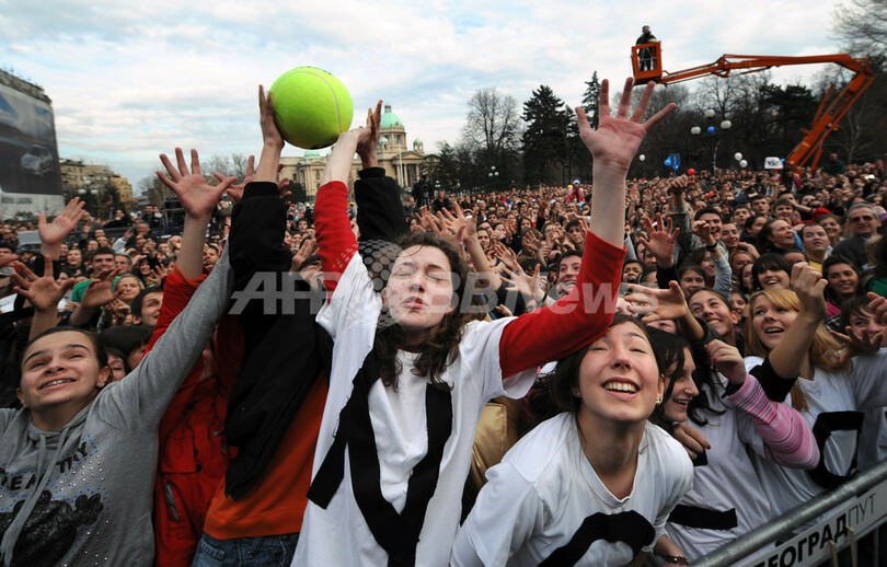 【2月3日 AFP】テニス、全豪オープン(Australian Open Tennis Tournament 2008)・男子シングルスの覇者ノバク・ジョコビッチ(Novak Djokovic、セルビア)が現地1日に凱旋帰国を果たし、ベオグラード(Belgrade)市内で開催されたセレモニーには数万人のファンが駆けつけた。