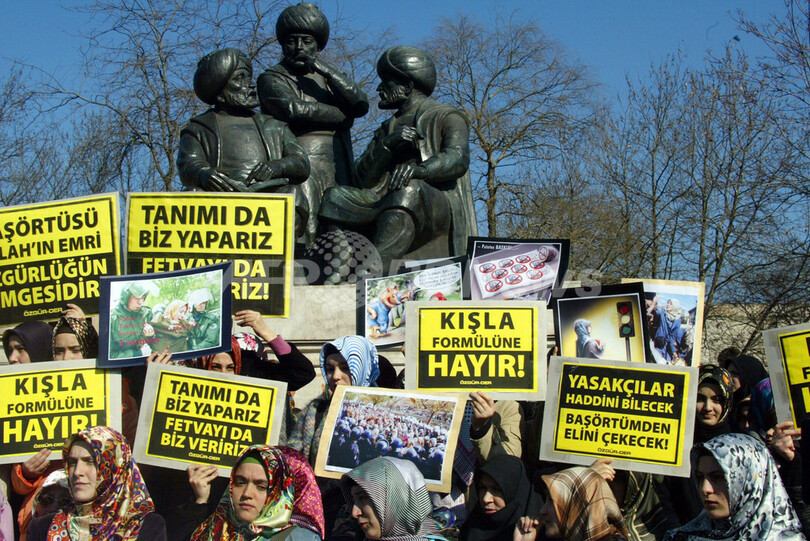 また、一部では、ヘッドスカーフが大学構内で解禁されると、同様の動きが公務員にも広がり、やがてはヘッドスカーフを着用しない数百万人の女性たちに宗教的・社会的圧力がかかるのではないかと危ぐしている。(c)AFP/Burak Akinci