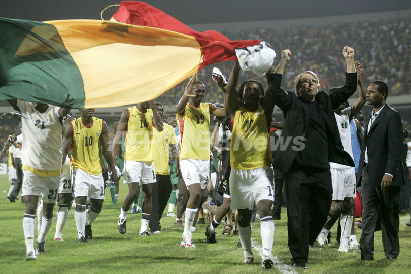前半35分にナイジェリアのヤクブ・アイェグベニ(Yakubu Ayegbeni)にPKで先制を許すも、前半ロスタイムにミカエル・エシアン(Michael Essien)がゴールを挙げて同点に追いついたガーナは、後半15分にキャプテンのジョン・メンサーが退場となったものの勢いが止まることはなく、後半38分にジュニア・アゴゴ(Manuel "Junior" Agogo)が決勝点を挙げ、開催国が勝ち進んだ。(c)AFP/Nick Reeves