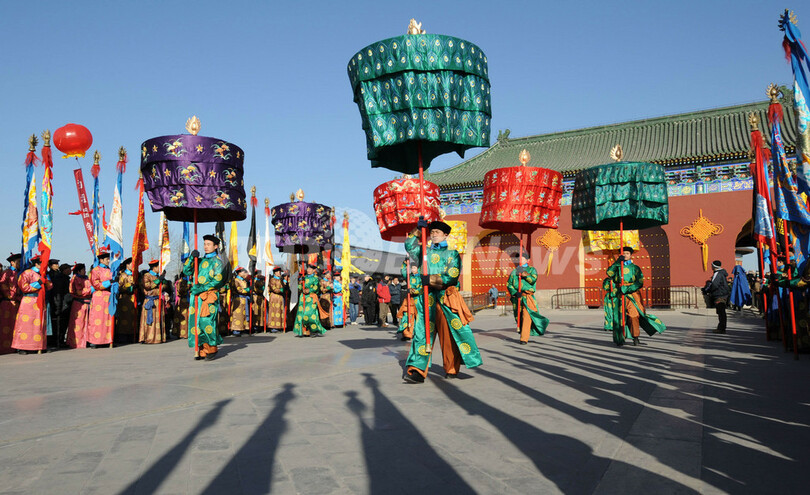 ニュース ライフ 北京で豊作祈る伝統的祈とう儀式を再現 2008年2月7日 16:30 発信地:北京/中国 [ 中国・台湾 中国 ] このニュースをシェア ‹ › ❮ 6/6 ❯ 2008年2月6日、北京(Beijing)にある「天壇(てんだん)」で、明、清王朝時代に行われた豊作祈願の儀式を行う俳優たち。(c)AFP/Peter PARKS 画像作成中 ! 【2月7日 AFP】旧正月を前日に控えた北京(Beijing)の観光名所「天壇(てんだん)」で6日、豊作を祈願する歴史的儀式が俳優らによって再現された。この儀式は明、清王朝時代の歴代皇帝によって行われたもの。この儀式再現の狙いは、同国の豊かな歴史を認識することとされる。(c)AFP ライフ 一覧へ> メディア・報道関係・法人の方向け 写真・動画 購入のお問合せ>