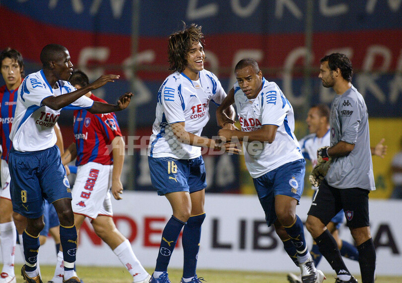スポーツ サッカー クルゼイロ リベルタドーレス杯南米選手権・2回戦進出を決める 2008年2月7日 14:27 発信地:アスンシオン/パラグアイ [ 中南米 パラグアイ ] このニュースをシェア ‹ › ❮ 1/7 ❯ チームのゴールに歓喜するクルゼイロの(左から)ラミレス(%%Ramires Santos do Nascimento%%)、マルセロ・マルティンス(%%Marcelo Martins%%)、チアゴ・エレーノ(%%Thiago Heleno Henrique Ferreira%%)。(c)AFP/Norberto Duarte 画像作成中 ! 【2月7日 AFP】サッカー、リベルタドーレス杯南米選手権2008(Copa Libertadores de America 2008)・予備選1回戦、セロ・ポルティーニョ(Cerro Porteno、パラグアイ)vsクルゼイロEC(Cruzeiro EC)、第2戦。試合はクルゼイロが3-2でリードした後半23分に中止となり、その結果2戦合計のスコアを6-3としたクルゼイロが2回戦進出を決めた。(c)AFP サッカー 一覧へ> メディア・報道関係・法人の方向け 写真・動画 購入のお問合せ>
