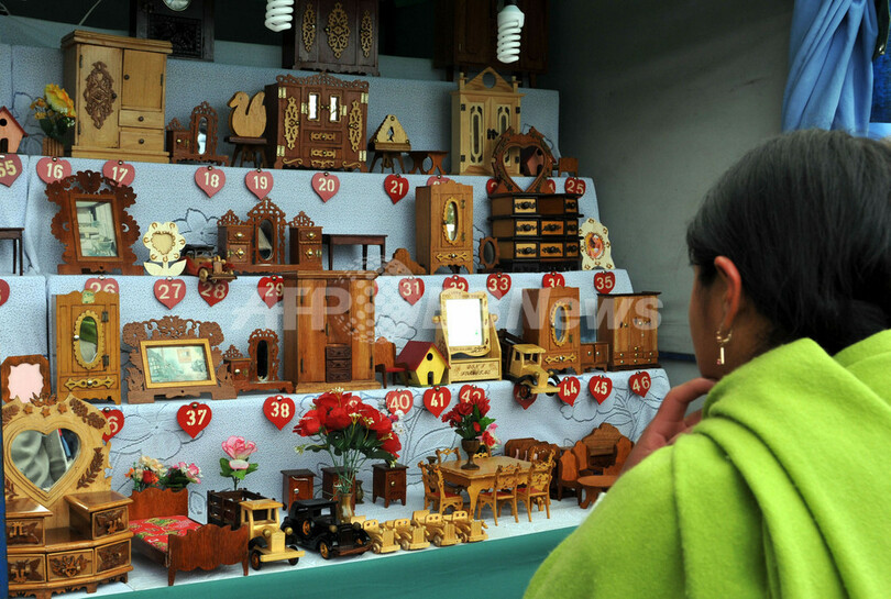 ニュース ライフ ミニチュア品で願いかなう? ボリビア先住民族伝統の「アラシタス」祭 2008年2月8日 13:32 発信地:ラパス/ボリビア [ 中南米 ボリビア ] このニュースをシェア ‹ › ❮ 19/24 ❯ 2008年2月1日、ボリビアのラパス(La Paz)で開かれたアイマラ族の祭り「アラシタス(Alasitas)」の市で売られている家具のミニチュア。(c)AFP/AIZAR RALDES 画像作成中 ! 【2月8日 AFP】ボリビアの政府所在地・ラパス(La Paz) で、アイマラ族(Aymara)の祭典「アラシタス(Alasitas)」が開催された。ボリビアやペルーの先住民族アイマラ族には、新年を迎える前に欲しいと思う物品の小型レプリカを買う習慣があり、それを福の神エケコ(Ekeko)の人形に背負わせれば手に入ると信じられている。祭典期間中の市には、台所用品や家、紙幣などさまざまなミニチュアを販売する露店が軒を並べ、大勢の客でにぎわった。(c)AFP ライフ 一覧へ> メディア・報道関係・法人の方向け 写真・動画 購入のお問合せ>