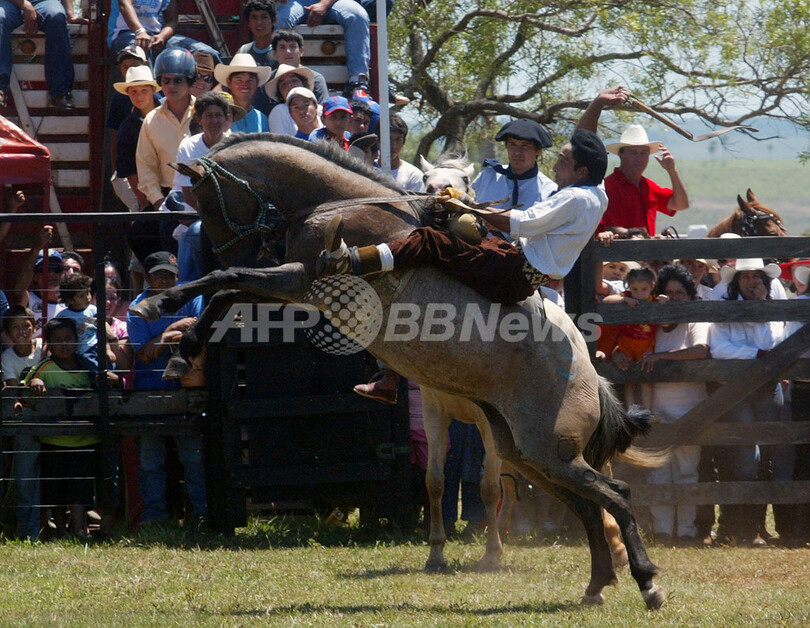 ニュース ライフ 南米のカウボーイ、ガウチョのフェスティバル開催 2008年2月8日 22:52 発信地:サンティアゴ/パラグアイ [ 中南米 パラグアイ ] このニュースをシェア ‹ › ❮ 3/6 ❯ 2008年2月3日、パラグアイのサンティアゴ(Santiago)で開催された伝統の祭で、馬術パフォーマンスを披露するガウチョ。(c)AFP/Norberto DUARTE 画像作成中 ! 【2月8日 AFP】パラグアイの首都アスンシオン(Asuncion)の南方270キロに位置するサンティアゴ(Santiago)で3日、南米のカウボーイとして知られる「ガウチョ」による伝統の祭が開催され、ロデオや馬術パフォーマンスなどが披露された。(c)AFP ライフ 一覧へ> メディア・報道関係・法人の方向け 写真・動画 購入のお問合せ>