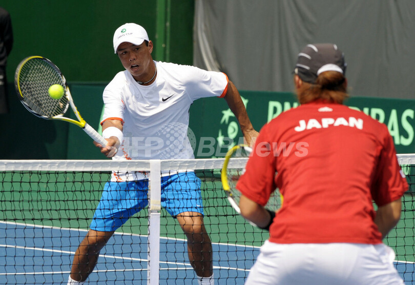 【2月9日 AFP】男子テニス・デビスカップ(2008 Davis Cup)・アジア・オセアニアゾーン・グループⅠ・1回戦、フィリピンvs日本。日本の添田豪(Go Soeda)/鈴木貴男(Takao Suzuki)組は、第3試合のダブルスでフィリピンのセシル・マミット(Cecil Mamiit)/エリック・タイノ(Eric Taino)組と対戦。添田/鈴木組はセットカウント3-1(6-7、7-6、7-6、6-4)でマミット/タイノ組を降し、日本は3連勝でアジア・オセアニアゾーン・グループⅠ・2回戦進出を決めた。(c)AFP