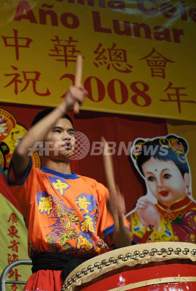 ニュース ライフ 旧正月の開始を祝い、パナマで中国伝統の獅子舞を披露 2008年2月9日 23:30 発信地:パナマ市/パナマ [ 中南米 パナマ ] このニュースをシェア ‹ › ❮ 2/5 ❯ 2008年2月7日、パナマのパナマ市(Panama City)で、旧正月の始まりを祝って披露された中国の伝統的な獅子舞の太鼓をたたく男性。(c)AFP/Elmer MARTINEZ 画像作成中 ! 【2月9日 AFP】パナマのパナマ市(Panama City)で7日、旧暦の新年を祝って、中国の雑技団が伝統的な獅子舞を披露した。旧暦では7日が4706年1月1日となる。(c)AFP ライフ 一覧へ> メディア・報道関係・法人の方向け 写真・動画 購入のお問合せ>