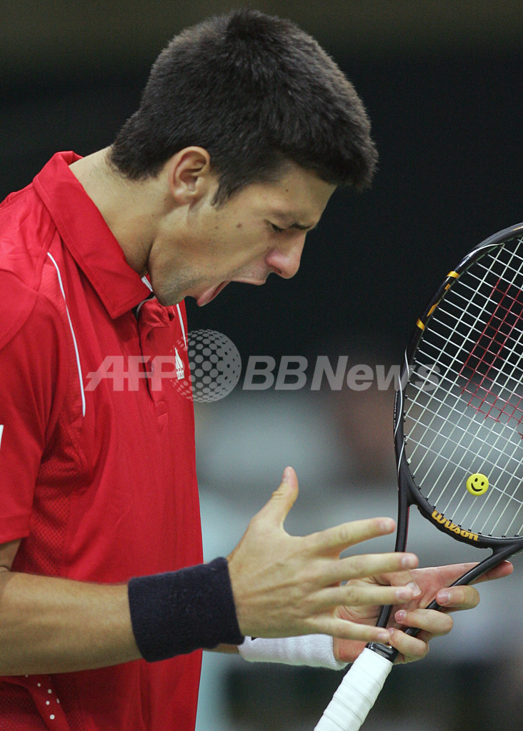 【2月10日 AFP】男子テニス・デビスカップ(2008 Davis Cup)・ワールドグループ2008・1回戦、ロシアvsセルビア。セルビアのノバク・ジョコビッチ(Novak Djokovic)/ネナッド・ジモンイッチ(Nenad Zimonjic)組は、第3試合のダブルスでミハイル・ユーズニー(Mikhail Youzhny)/ドミトリー・ツルスノフ(Dmitry Tursunov)組と対戦。ジョコビッチ/ジモンイッチ組はセットカウント3-0(6-3、7-6、7-6)でユーズニー/ツルスノフ組を降し、セルビアが初勝利を挙げた。(c)AFP