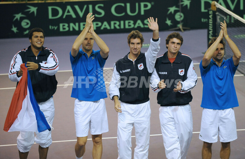 【2月10日 AFP】男子テニス・デビスカップ(2008 Davis Cup)・ワールドグループ2008・1回戦、ルーマニアvsフランス。フランスのアルノー・クレマン(Arnaud Clement)/ミカエル・ロドラ(Michael Llodra)組は、第3試合のダブルスでルーマニアのフロリン・メルゲア(Florin Mergea)/ホリア・テカウ(Horia Tecau)と対戦。試合はクレマン/ロドラ組がセットカウント3-2(6-3、6-4、6-7、3-6、6-2)でメルゲラ/テカウ組を降し、フランスは3連勝を飾り同グループ準々決勝へ駒を進めた。(c)AFP