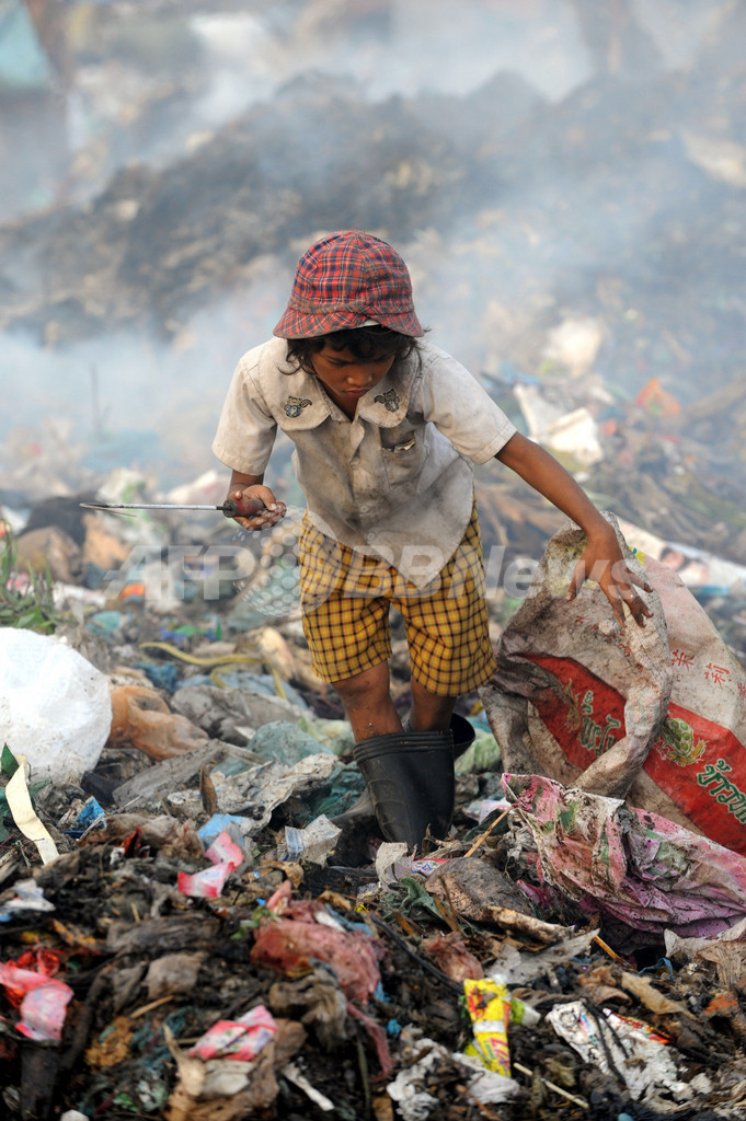 【2月10日 AFP】カンボジアの首都プノンペン(Phnom Penh)にある約40ヘクタールのゴミ集積所で、12歳の少女Chek Toyが再利用できる物を探している。