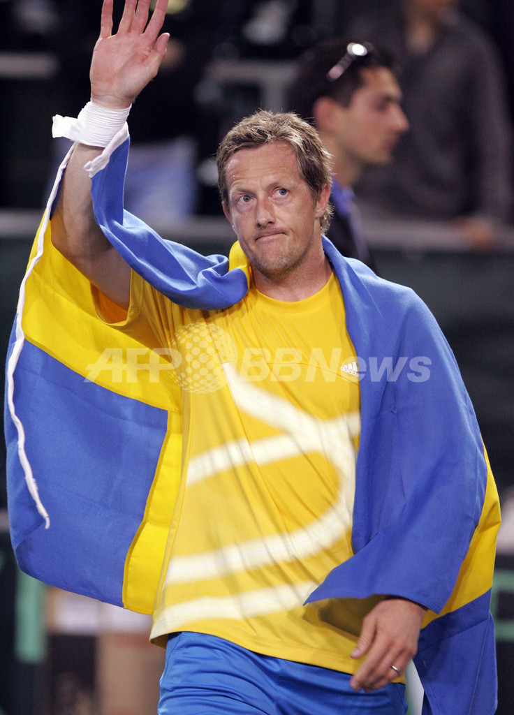【2月11日 AFP】男子テニス・デビスカップ(2008 Davis Cup)・ワールドグループ2008・1回戦、イスラエルvsスウェーデン。スウェーデンのヨナス・ビヨークマン(Jonas Bjorkman) は、第5試合のシングルスでハレル・レビ(Harel Levy)と対戦。ビヨークマンはセットカウント3-1(0-6、6-4、6-3、7-6)でレビを降し、スウェーデンは3勝目を挙げて同グループ準々決勝への進出を決めた。(c)AFP