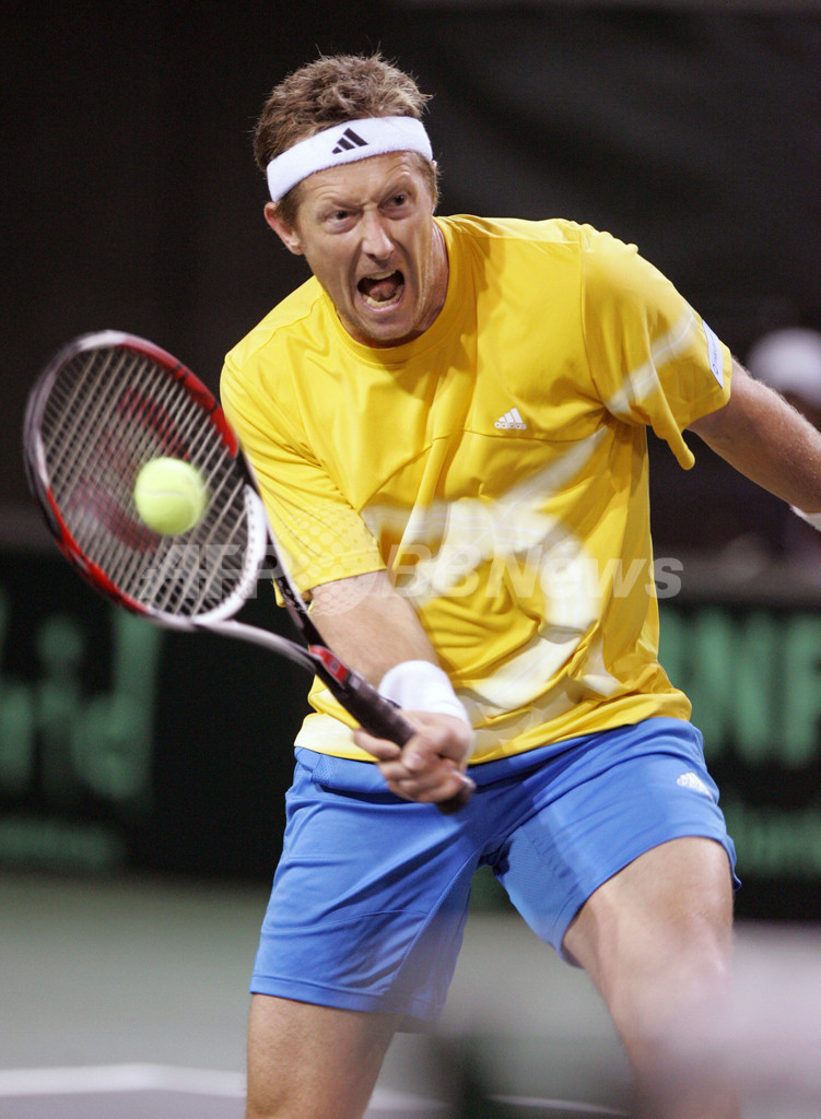 【2月11日 AFP】男子テニス・デビスカップ(2008 Davis Cup)・ワールドグループ2008・1回戦、イスラエルvsスウェーデン。スウェーデンのヨナス・ビヨークマン(Jonas Bjorkman) は、第5試合のシングルスでハレル・レビ(Harel Levy)と対戦。ビヨークマンはセットカウント3-1(0-6、6-4、6-3、7-6)でレビを降し、スウェーデンは3勝目を挙げて同グループ準々決勝への進出を決めた。(c)AFP