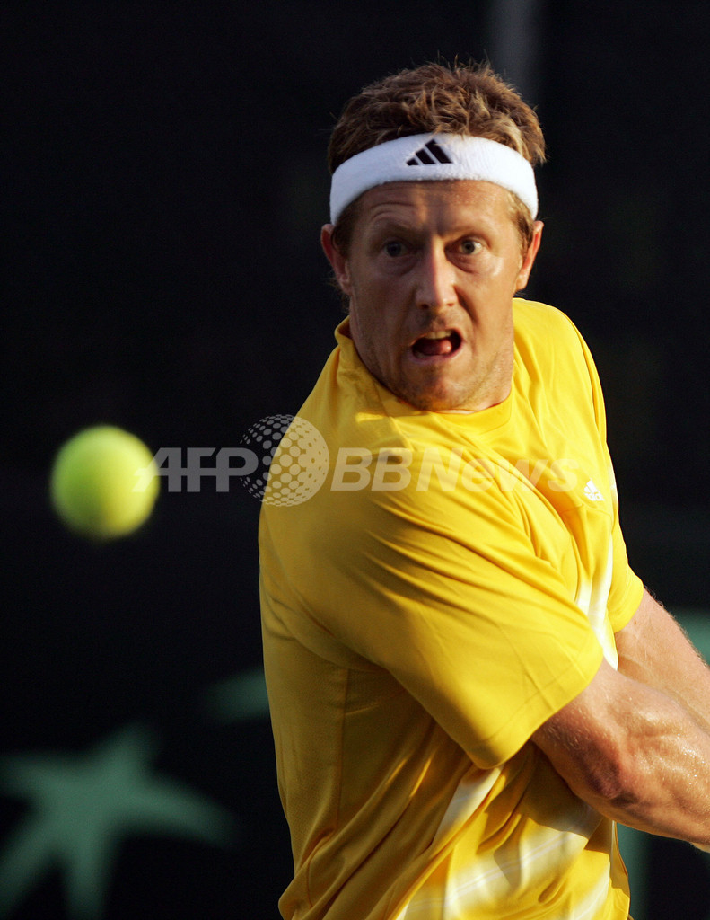 【2月11日 AFP】男子テニス・デビスカップ(2008 Davis Cup)・ワールドグループ2008・1回戦、イスラエルvsスウェーデン。スウェーデンのヨナス・ビヨークマン(Jonas Bjorkman) は、第5試合のシングルスでハレル・レビ(Harel Levy)と対戦。ビヨークマンはセットカウント3-1(0-6、6-4、6-3、7-6)でレビを降し、スウェーデンは3勝目を挙げて同グループ準々決勝への進出を決めた。(c)AFP