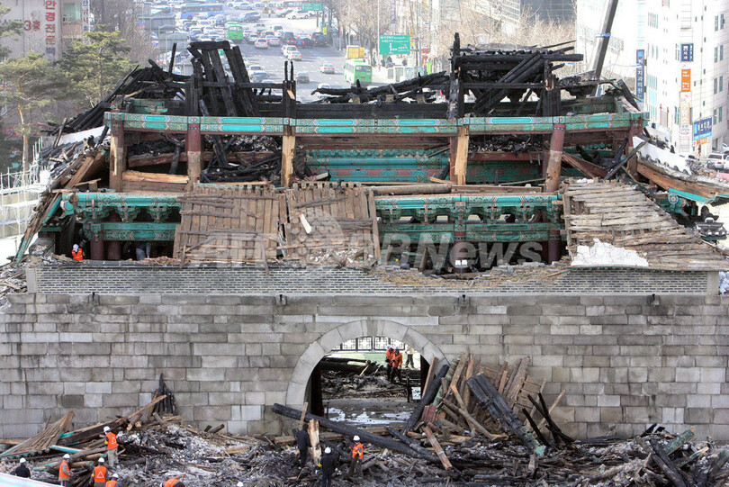 【2月12日 AFP】韓国のソウル(Seoul)中心部の歴史的建造物南大門(Namdaemun)が全焼した火災で、警察当局は12日、容疑者の男(69)が放火を認めたと発表した。またこの男には放火の前科があることを明らかにした。