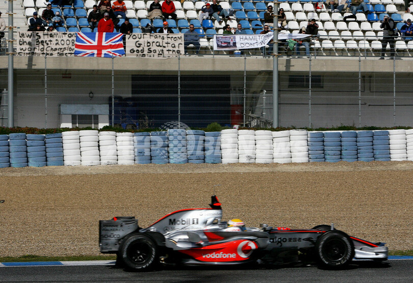 【2月14日 AFP】(写真追加)F1へレステスト2日目。マクラーレン・メルセデス(McLaren-Mercedes)のルイス・ハミルトン(Lewis Hamilton)は、68周を走行し6番手タイムとなるベストラップ1分19秒857を記録した。