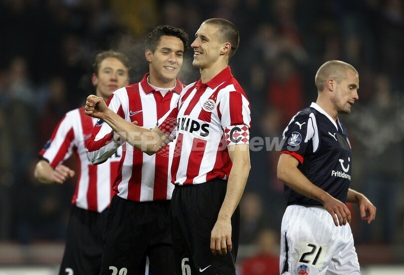 スポーツ サッカー PSVアイントホーフェン ヘルシンボリとの第1戦で快勝 2008年2月14日 11:21 発信地:アイントホーフェン/オランダ [ ヨーロッパ オランダ ] このニュースをシェア ‹ › ❮ 1/3 ❯ 先制ゴールを決めてチームメイトからの祝福を受けるPSVアイントホーフェンのティミー・シモンズ(%%Timmy Simons%%)。(c)AFP/ANP/ROBERT VOS 画像作成中 ! 【2月14日 AFP】サッカーUEFA杯2007-08(UEFA Cup 2007-08)・決勝トーナメント1回戦、PSVアイントホーフェン(PSV Eindhoven)vsヘルシンボリIF(Helsingborg IF)。試合はPSVアイントホーフェンが2-0でヘルシンボリに先勝した。(c)AFP サッカー 一覧へ> メディア・報道関係・法人の方向け 写真・動画 購入のお問合せ>