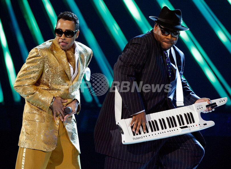 2008年2月10日、ロサンゼルス(Los Angeles)で開催された、第50回グラミー賞(The 50th Annual Grammy Awards)の授賞式でパフォーマンスを披露する、歌手のモリス・デイ(%%Morris Day%%、左)とプロデューサーのジミー・ジャム(%%Jimmy Jam%%)。(c)AFP/Getty Images/Kevin Winter
