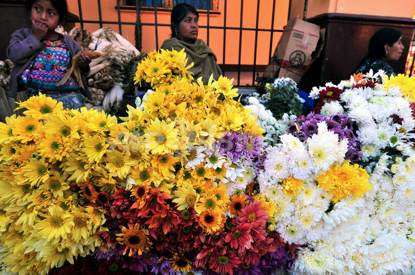 2008年2月12日、中米グアテマラのサンフアンサカテペケス(San Juan Sacatepequez)市内の広場で、バレンタインデーを前に花を売る女性。(c)AFP/Eitan ABRAMOVICH