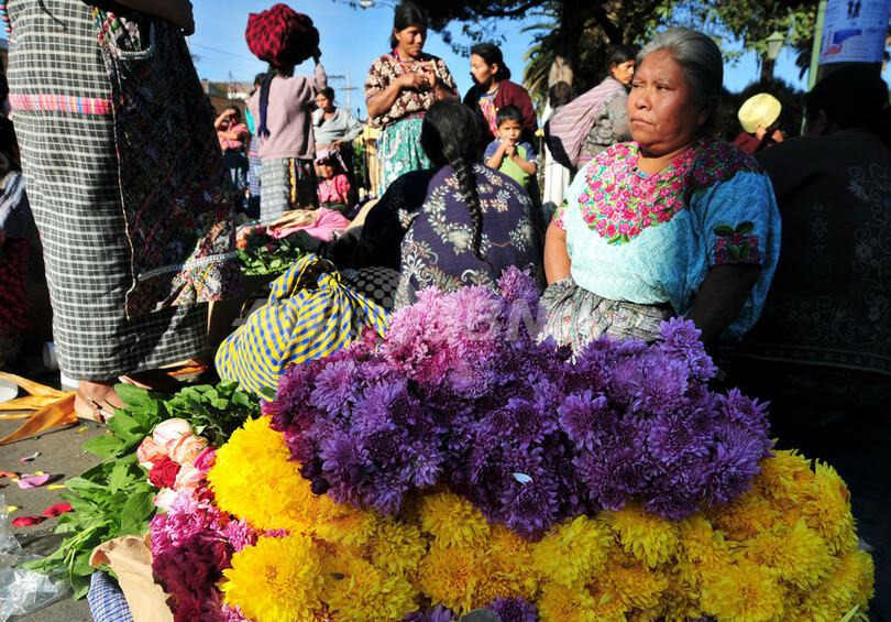 2008年2月12日、中米グアテマラのサンフアンサカテペケス(San Juan Sacatepequez)市内の広場で、バレンタインデーを前に花を売る女性。(c)AFP/Eitan ABRAMOVICH