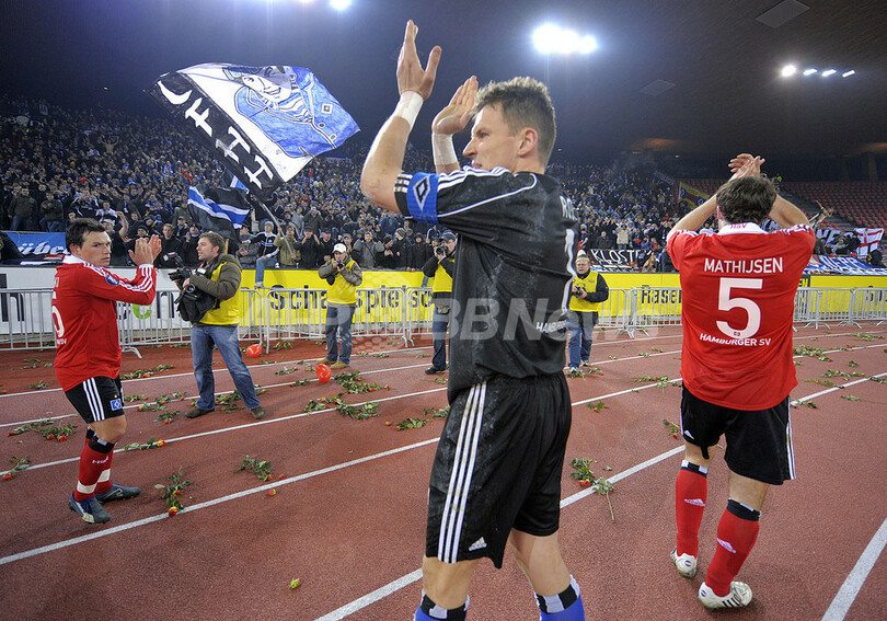 スポーツ サッカー ハンブルガーSV アウェーでFCチューリヒに先勝 2008年2月15日 9:42 発信地:チューリヒ/スイス [ ヨーロッパ スイス ] このニュースをシェア ‹ › ❮ 3/11 ❯ 試合後にサポーターからの声援に応えるハンブルガーの選手たち。(c)AFP/Fabrice Coffrini 画像作成中 ! 【2月15日 AFP】サッカーUEFA杯2007-08(UEFA Cup 2007-08)・決勝トーナメント1回戦、FCチューリヒ(FC Zurich)vsハンブルガーSV(Hamburger SV)、第1戦。試合はアウェーのハンブルガーが3-1でチューリヒに先勝し、決勝トーナメント2回戦進出へ向け前進した。(c)AFP サッカー 一覧へ> メディア・報道関係・法人の方向け 写真・動画 購入のお問合せ>