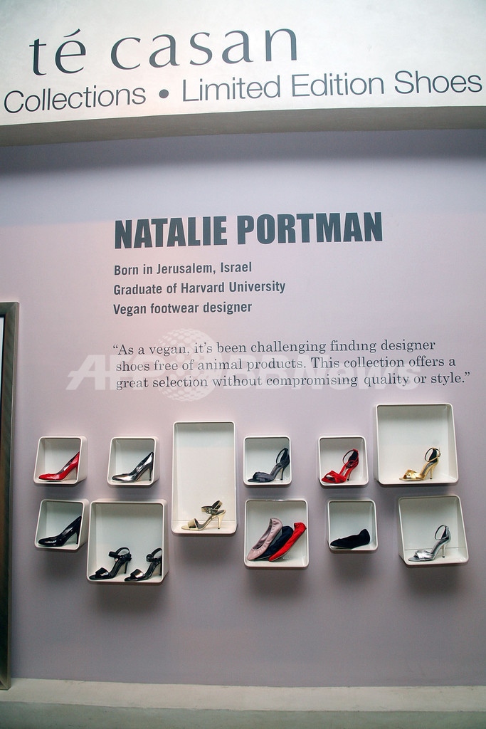 米ニューヨーク市内の「テ カサン」ブティックで12日に開かれた発売記念パーティーに、ナタリーはデレク・ラム(Derek Lam)のドレスと自分がデザインした赤いシューズ姿で出席。自分を靴フェチと称し、「世の中にはアニマル・フレンドリーなデザイナーがあまりいないでしょう。いつも、美しくて完全菜食主義者に優しい靴があればいいのにと思っていたけど、見つけるのがとても大変だったのよ」と話す。