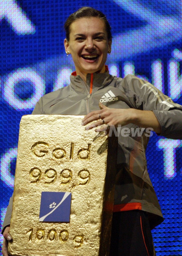4メートル94センチを2回失敗した後に、最後の3回目にバーの高さを4メートル95センチに上げ、見事に成功を収めたイシンバエワは「五輪シーズンの最初の大会で世界記録を更新できてとてもうれしい」と喜びを語った。(c)AFP