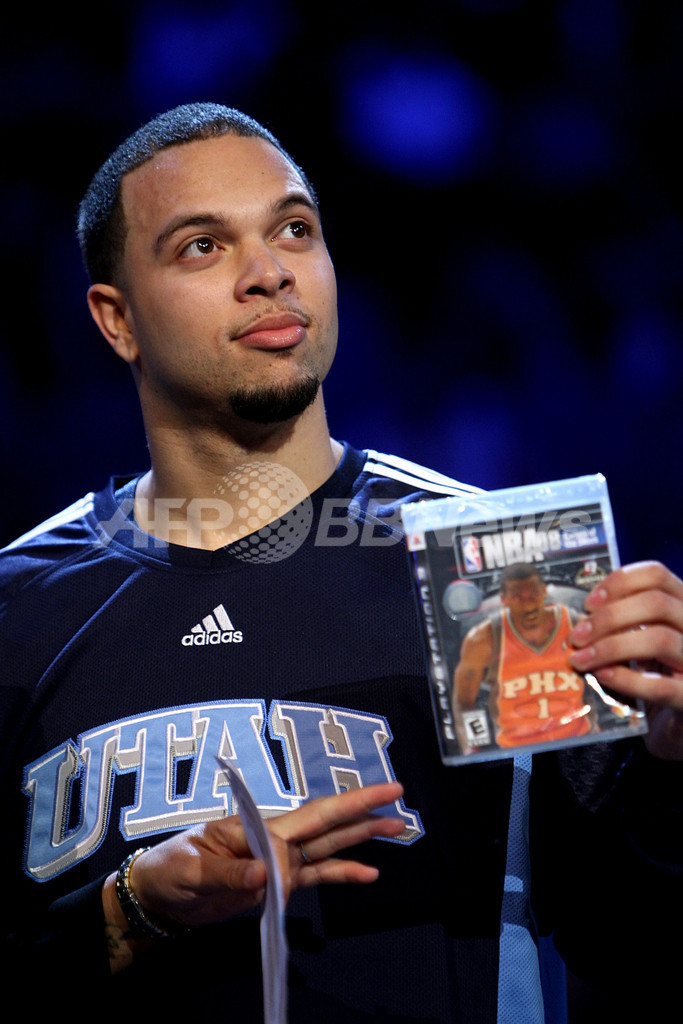 【2月17日 AFP】第57回・NBA・オールスター・ゲーム2008(2008 NBA All-Star game)を翌17日に控えた現地16日、試合会場となるニューオーリンズ・アリーナ(New Orleans Arena)でプレイステーション・スキルズ・チャンレンジ(Playstation Skills Challenge)が行われ、ユタ・ジャズ(Utah Jazz)のデロン・ウィリアムス(Deron Williams)が新記録となる25秒5を記録して優勝を果たした。(c)AFP