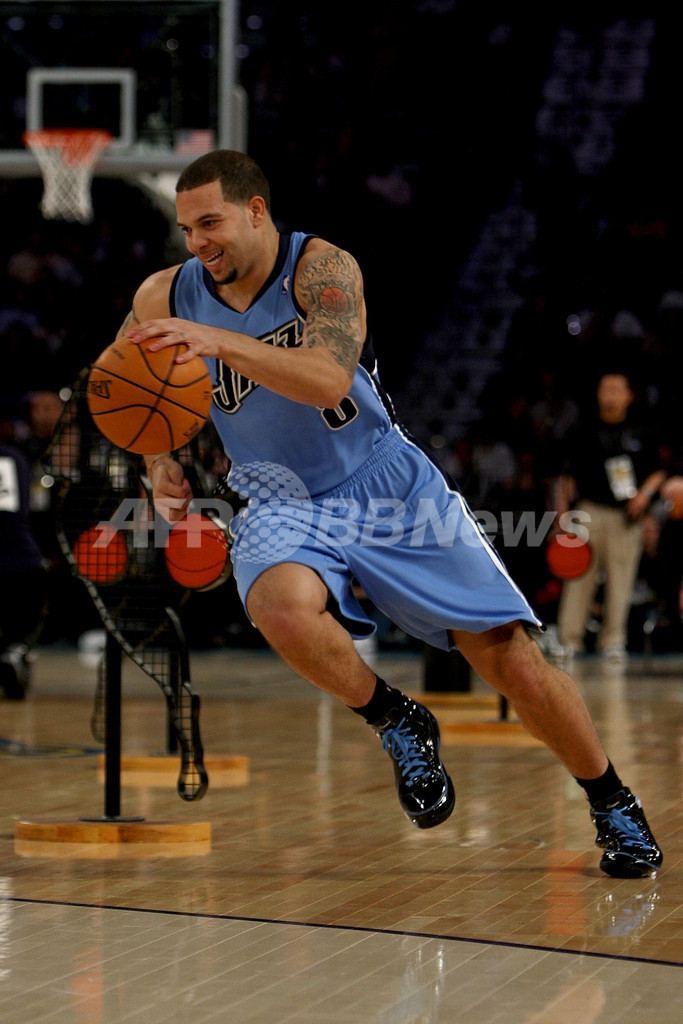 【2月17日 AFP】第57回・NBA・オールスター・ゲーム2008(2008 NBA All-Star game)を翌17日に控えた現地16日、試合会場となるニューオーリンズ・アリーナ(New Orleans Arena)でプレイステーション・スキルズ・チャンレンジ(Playstation Skills Challenge)が行われ、ユタ・ジャズ(Utah Jazz)のデロン・ウィリアムス(Deron Williams)が新記録となる25秒5を記録して優勝を果たした。(c)AFP