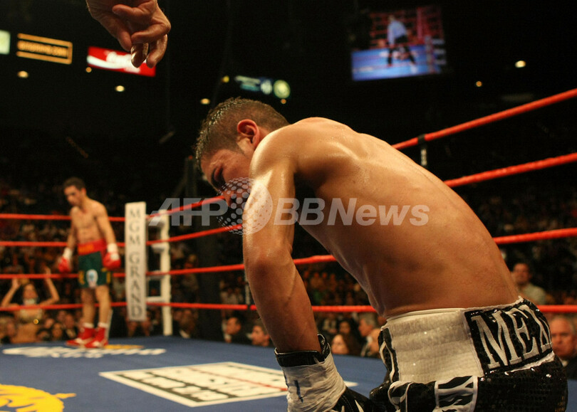 スポーツ スポーツ その他 モンティエル カスティーヨを降しタイトル防衛に成功 2008年2月17日 17:58 発信地:ラスベガス/米国 [ 北米 米国 ] このニュースをシェア ‹ › ❮ 3/5 ❯ リングに膝をつくカスティーヨ(右)。(c)AFP/Getty Images/Jed Jacobsohn 画像作成中 ! 【2月17日 AFP】ボクシング、WBOスーパーフライ級タイトルマッチ。WBOスーパーフライ級王者のフェルナンド・モンティエル(Fernando Montiel、メキシコ)は、挑戦者のマーティン・カスティーヨ(Martin Castillo、メキシコ)と対戦。試合はモンティエルがカスティーヨを4ラウンドKO勝ちを収め、タイトル防衛に成功した。(c)AFP/Getty Images スポーツ その他 一覧へ> メディア・報道関係・法人の方向け 写真・動画 購入のお問合せ>