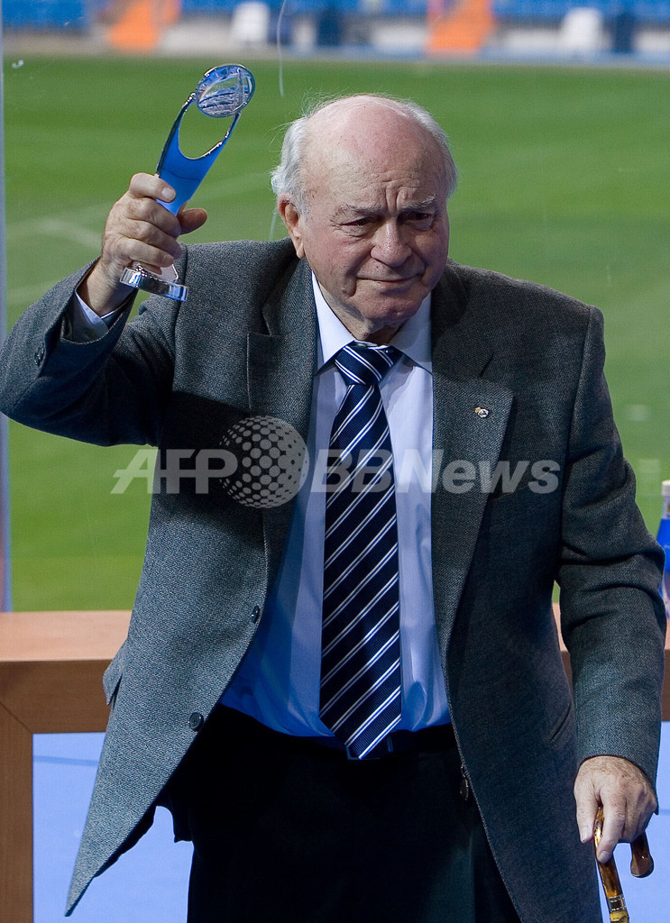 【2月18日 AFP】スペイン・リーガエスパニョーラ1部、レアル・マドリード(Real Madrid)に所属していた伝説的なストライカーであるアルフレッド・ディ・ステファノ(Alfredo Di Stefano)名誉会長が17日、欧州サッカー連盟(UEFA)とレアル・マドリードからその功績を称えられ表彰を受けた。
