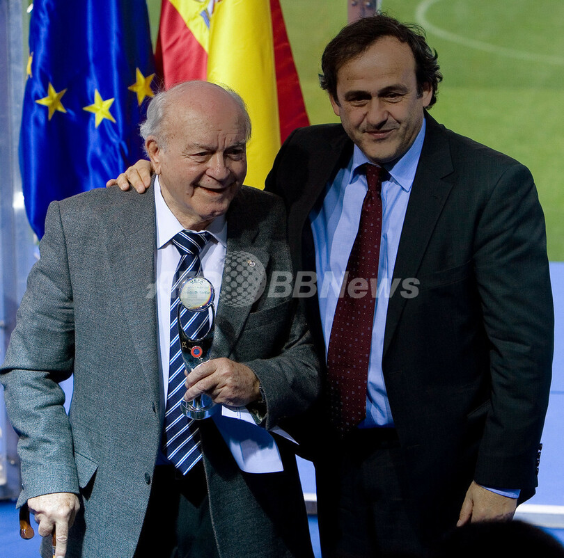 【2月18日 AFP】スペイン・リーガエスパニョーラ1部、レアル・マドリード(Real Madrid)に所属していた伝説的なストライカーであるアルフレッド・ディ・ステファノ(Alfredo Di Stefano)名誉会長が17日、欧州サッカー連盟(UEFA)とレアル・マドリードからその功績を称えられ表彰を受けた。