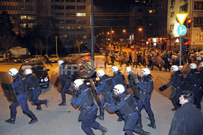 熱狂的なサッカーファンら約800人が暴動を起こし、米大使館に加え、スロベニア大使館やファストフード店「マクドナルド(McDonald)」2店舗の窓ガラスが割られた。
