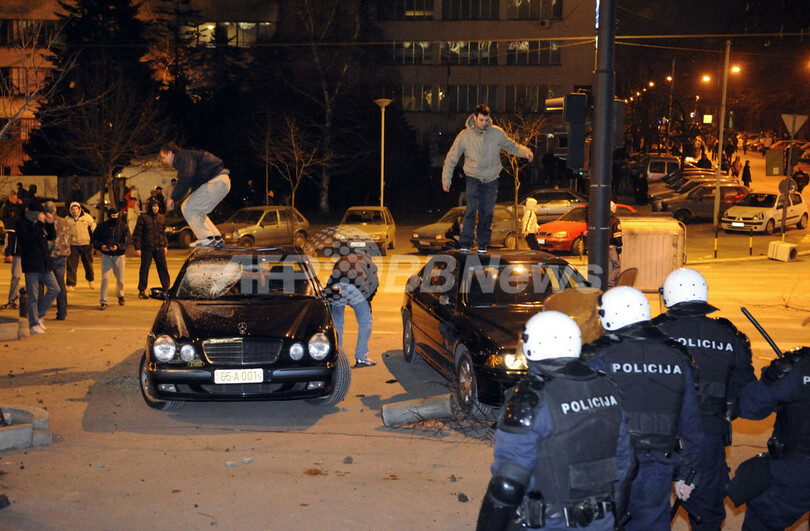 コソボ独立に抗議、ベオグラードで若者ら暴徒化
