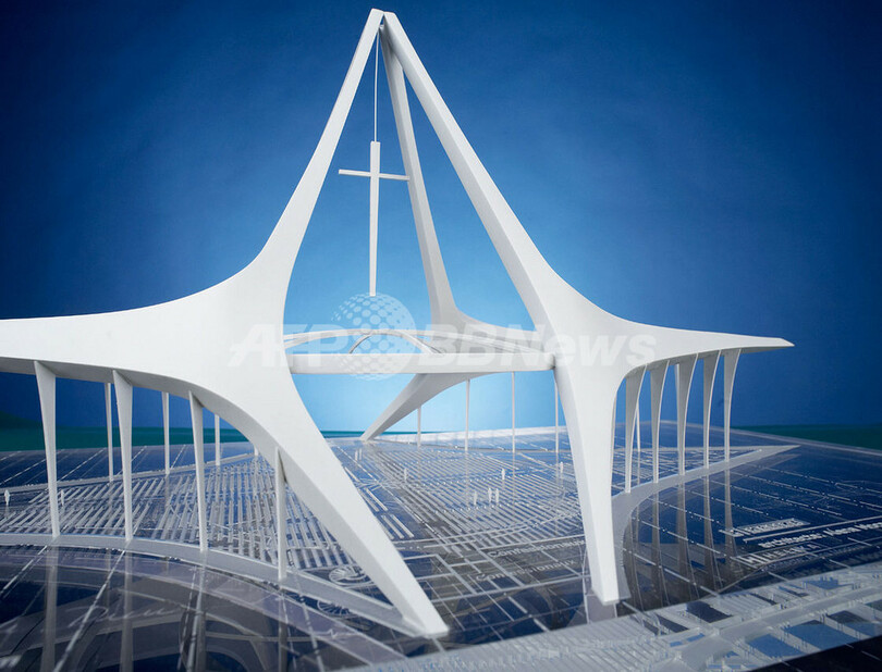 計画の全容はまだ決定していないが、チェコの会社が落札し、完成すると高さが70メートルで4500人を収容する教会になるとされている。(c)AFP