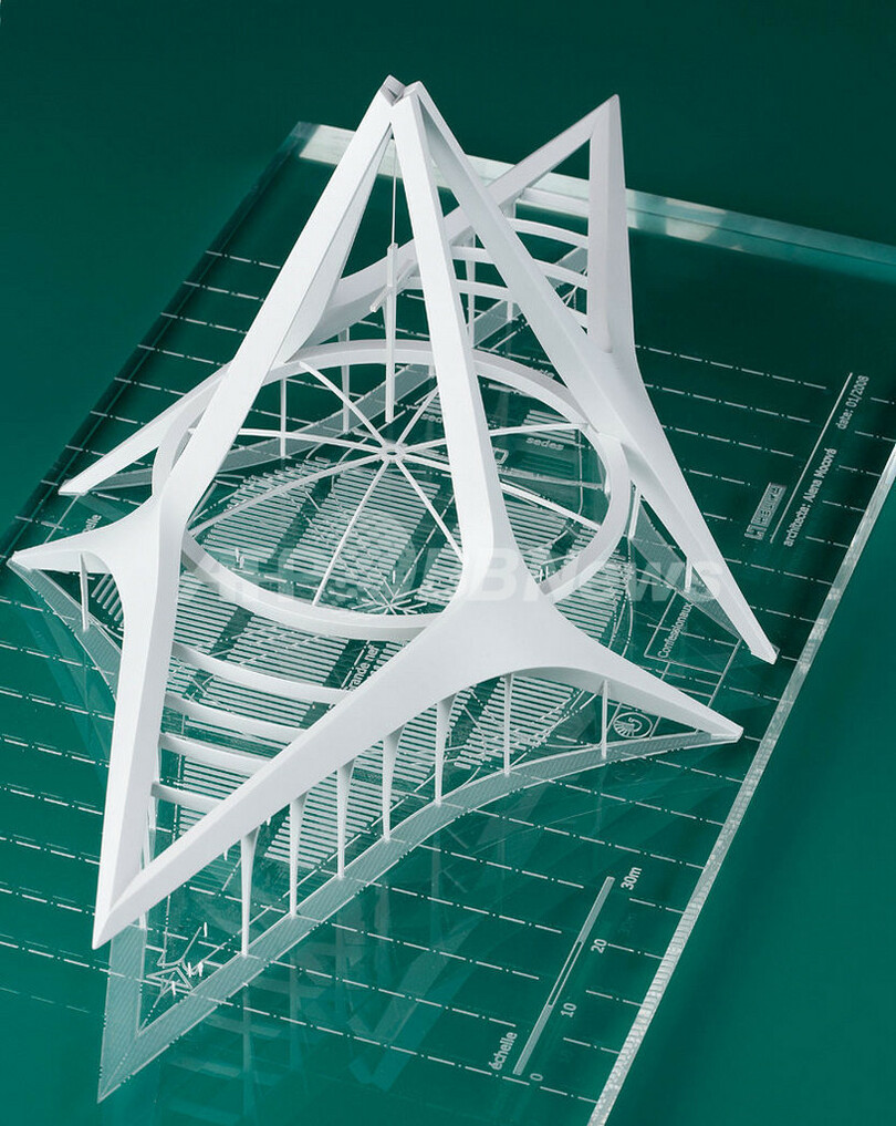 計画の全容はまだ決定していないが、チェコの会社が落札し、完成すると高さが70メートルで4500人を収容する教会になるとされている。(c)AFP