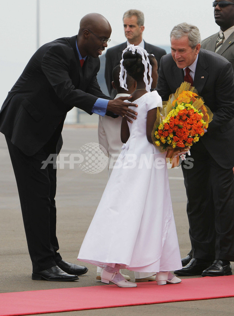 【2月20日 AFP】6日間の日程でアフリカ5か国を歴訪中のジョージ・W・ブッシュ(George W. Bush)米大統領は19日、3つめの訪問国ルワンダの首都キガリ(Kigali)に到着した。キガリ国際空港(Kigali International Airport)ではポール・カガメ(Paul Kagame)ルワンダ大統領が出迎え、歓迎式典が行われた。