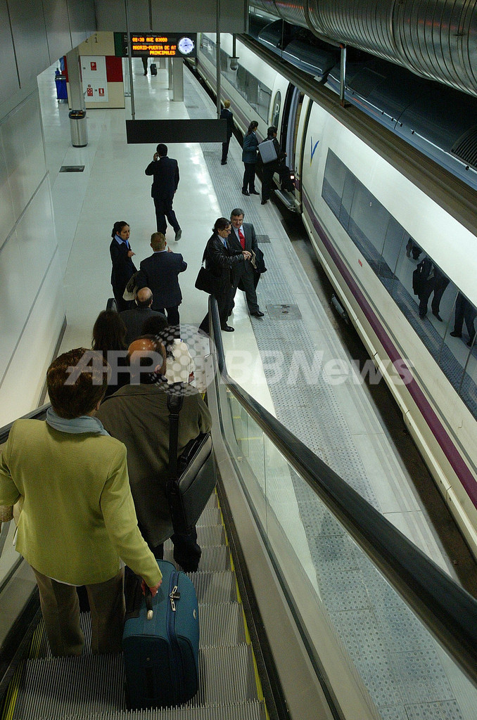 ニュース 政治・経済 スペインの高速列車AVE、バルセロナ・マドリード間の運行を開始 2008年2月21日 10:38 発信地:バルセロナ/スペイン [ ヨーロッパ スペイン ] このニュースをシェア ‹ › ❮ 6/12 ❯ 2008年2月20日、スペインのバルセロナ(Barcelona)とマドリード(Madrid)を結ぶ高速列車AVEの運行開始を控え、バルセロナのサンツ駅で待機する1番列車。(c)AFP/JOSEP LAGO 画像作成中 ! 【2月21日 AFP】スペインの高速列車AVEが20日、バルセロナ(Barcelona)とマドリード(Madrid)間の運行を開始した。これにより、両都市間はこれまでの3分の2以下の2時間半強で移動することが可能になる。(c)AFP 政治・経済 一覧へ> メディア・報道関係・法人の方向け 写真・動画 購入のお問合せ>