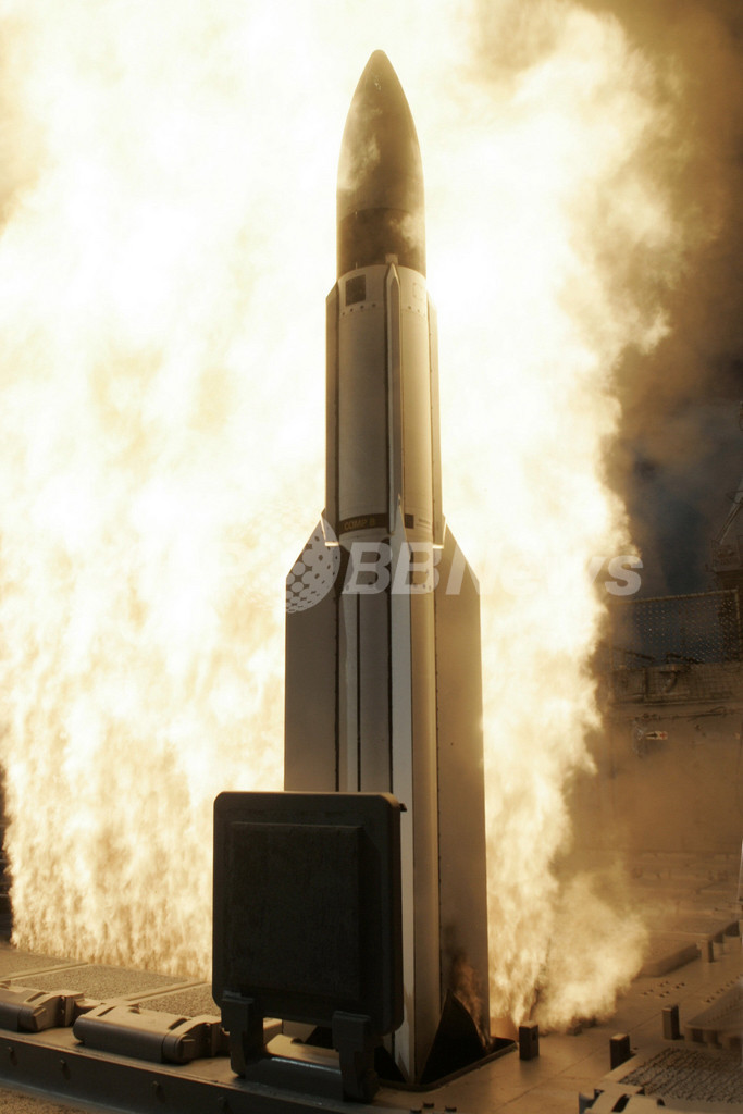 「レイク・エリー」は、最新鋭レーダーが察知した大気圏外の中距離弾道ミサイルを撃墜する迎撃ミサイル「SM-3」を搭載している。今回の偵察衛星の撃墜に備え、弾道ミサイルではなく衛星を認識するようソフトウェアに変更が加えられたという。(c)AFP