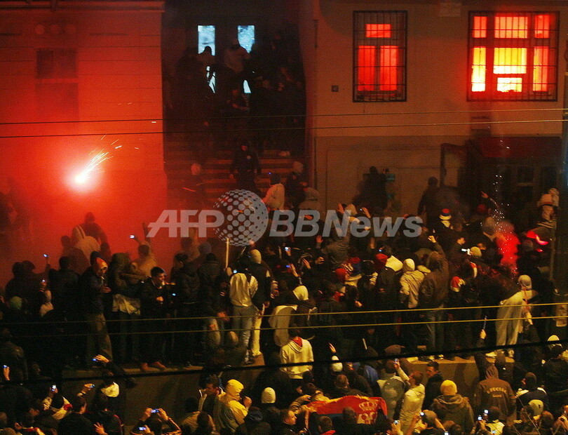 コソボ独立反対の若者ら、ベオグラードの米大使館に放火