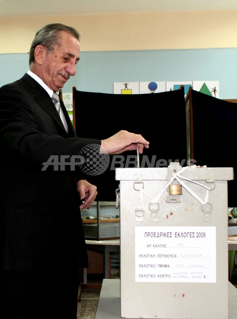 【2月25日 AFP】(一部修正)34年間にわたりギリシャ系とトルコ系の2共和国に分断されているキプロスで24日、ギリシャ系キプロス共和国の大統領選の決選投票が行われた。地元メディアが報じた最終結果によると、左派・労働人民進歩党(AKEL)党首のフリストフィアス(Demetris Christofias)国会議長(61)が53.36%を得票、46.64%の右派カスリデス(Ioannis Kasoulides)元外相(59)を抑えて当選を決めた。