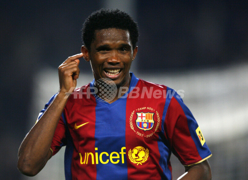 サミュエル・エトーは後半10分と同16分にゴールを決めると同43分にもゴールを決めて、自身シーズン初となるハットトリックを達成した。(c)AFP/Phil Minshull