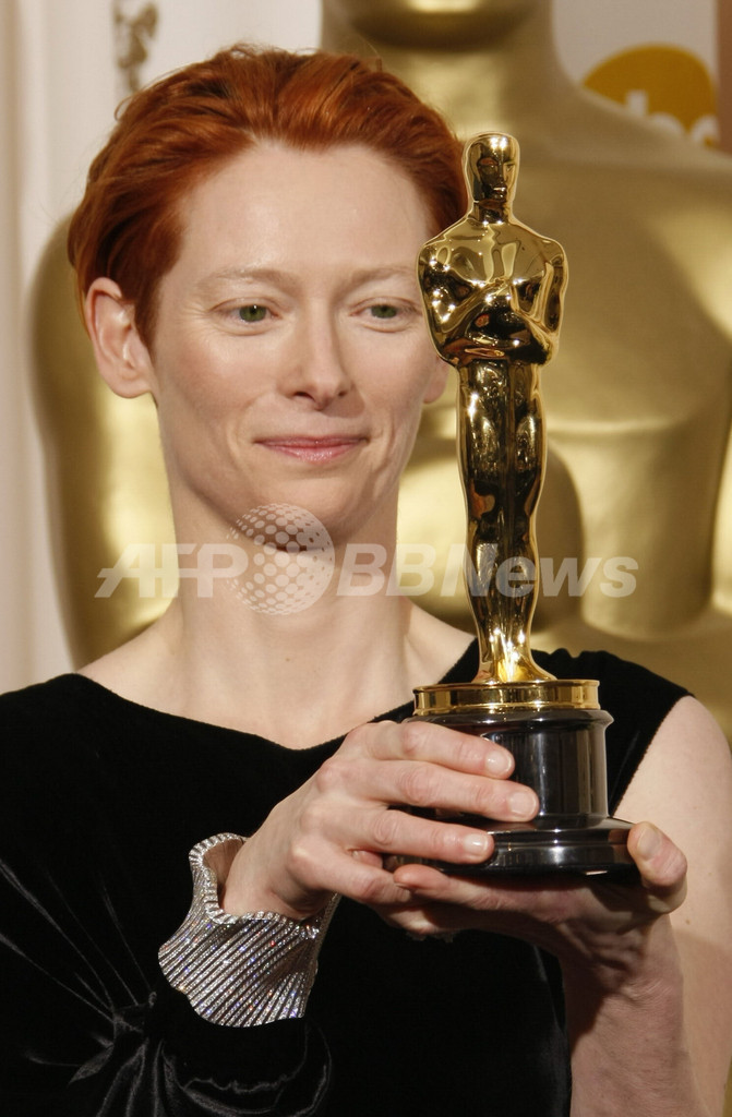 助演女優賞は『フィクサー(Michael Clayton)』のティルダ・スウィントン(Tilda Swinton)。光沢の美しいランバン(Lanvin)のブラックドレスにダミアーニ(Damiani)のダイヤモンド・サハラカフスとミモザリングを合わせた。(c)MODE PRESS