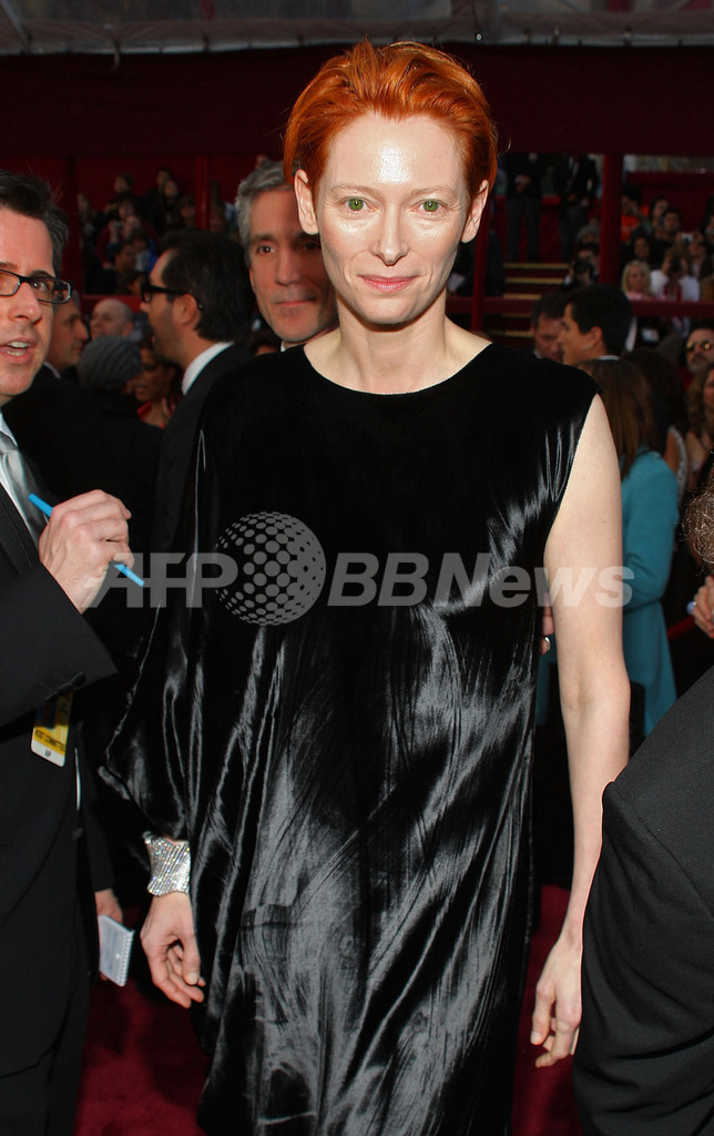 助演女優賞は『フィクサー(Michael Clayton)』のティルダ・スウィントン(Tilda Swinton)。光沢の美しいランバン(Lanvin)のブラックドレスにダミアーニ(Damiani)のダイヤモンド・サハラカフスとミモザリングを合わせた。(c)MODE PRESS